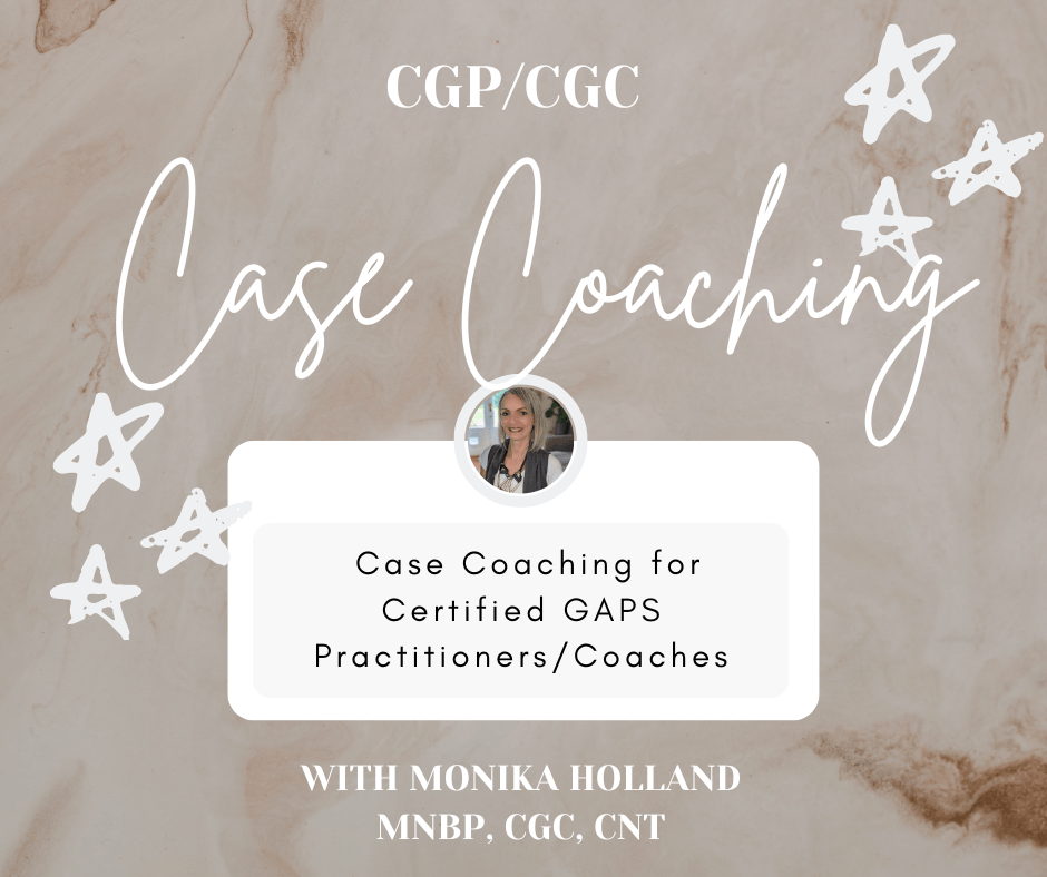 CGP/CGC Case Coaching is designed to support certified practitioners and coaches in guiding their clients through the No Plant GAPS protocol.